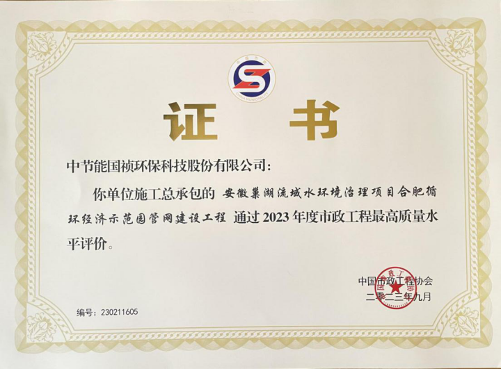 11月9日,2023年市政工程建设产业博览会上传来喜讯,由环球国际国祯管网事业部作为施工总承包单位的“合肥循环经济示范园管网建设工程项目”获2023年度中国市政工程最高质量水平评价奖项。