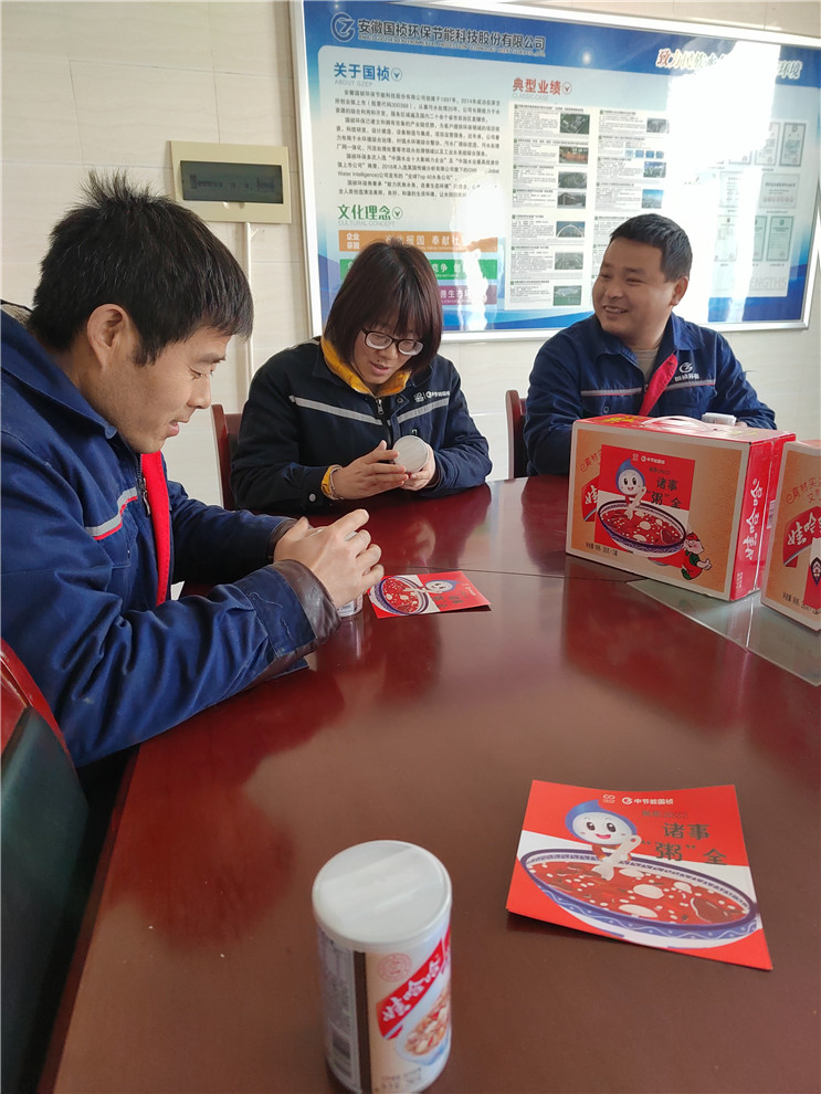 陕西彬县由于疫情防控需要,当地只有几家餐饮门店营业,无法订到现煮热粥。彬县国祯行政人员为了让厂区职工喝上应季的“腊八粥”,克服重重困难于1月9日23点采购到听装八宝粥。