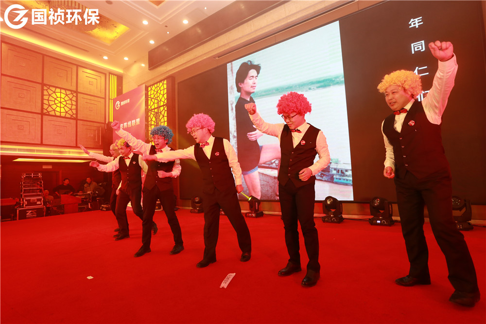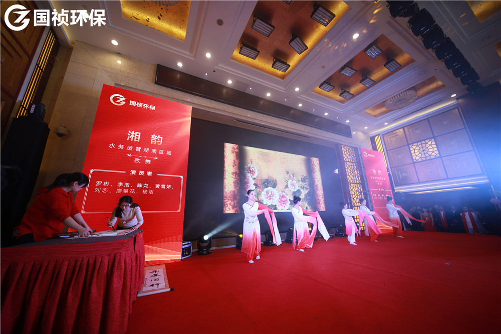 颁奖典礼也穿插了很多表演节目。贝斯、打碟、神曲……什么流行来什么,怎么专业怎么玩!一则《热舞串烧》迅速点燃气氛。《湘韵》巧妙将朗诵、书法、舞蹈、独唱合为一体,《花语》《家乡美》《九九女儿红》等演员舞姿曼妙,《平凡之路》《成都》《海阔天空》《友谊之光》等歌曲余音绕梁、悦耳动听,诗朗诵《麦王传情、光耀大地》情感热烈饱满;手语表演《夜空中最亮的星》向所有献身环保公益事业的人致敬;《不差钱》《辩论赛》《国祯好声音》等语言类节目包袱满满,让宴会厅充满欢声笑语。《国祯新闻联播》作为唯一一个连续四届登上“国祯春晚舞台”的小品,每年都说“再也没有下一届”,可每年都上演大型“真香”现场。《甲大人之穿越》中描绘国祯环保项目的诗文竟然是全部出自公司副总经理、水环境治理事业部总经理王立余之手,真是才华横溢、满腹经纶。由C位出道、超人气男团“国祯F6”倾全力打造的《中年阵线联盟》节目引得大家欢呼不断、鼓掌不停,观众宛如新闻发布会记者,恨不得将整段节目一秒不差全都记录下来,现场热闹气氛也达到了高潮,颁奖典礼最终在《我爱你国祯》的高亢优美女高音中落下帷幕。